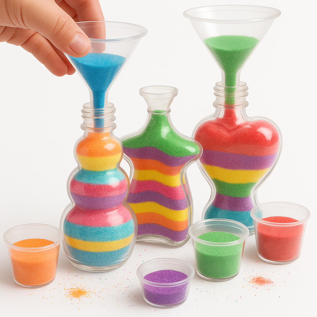 Fill charming mini bottles with layers of vibrant sand to create dazzling patterns. Each kit comes packed with a variety of colorful sands and clear containers, making it super easy to express your artistic flair.